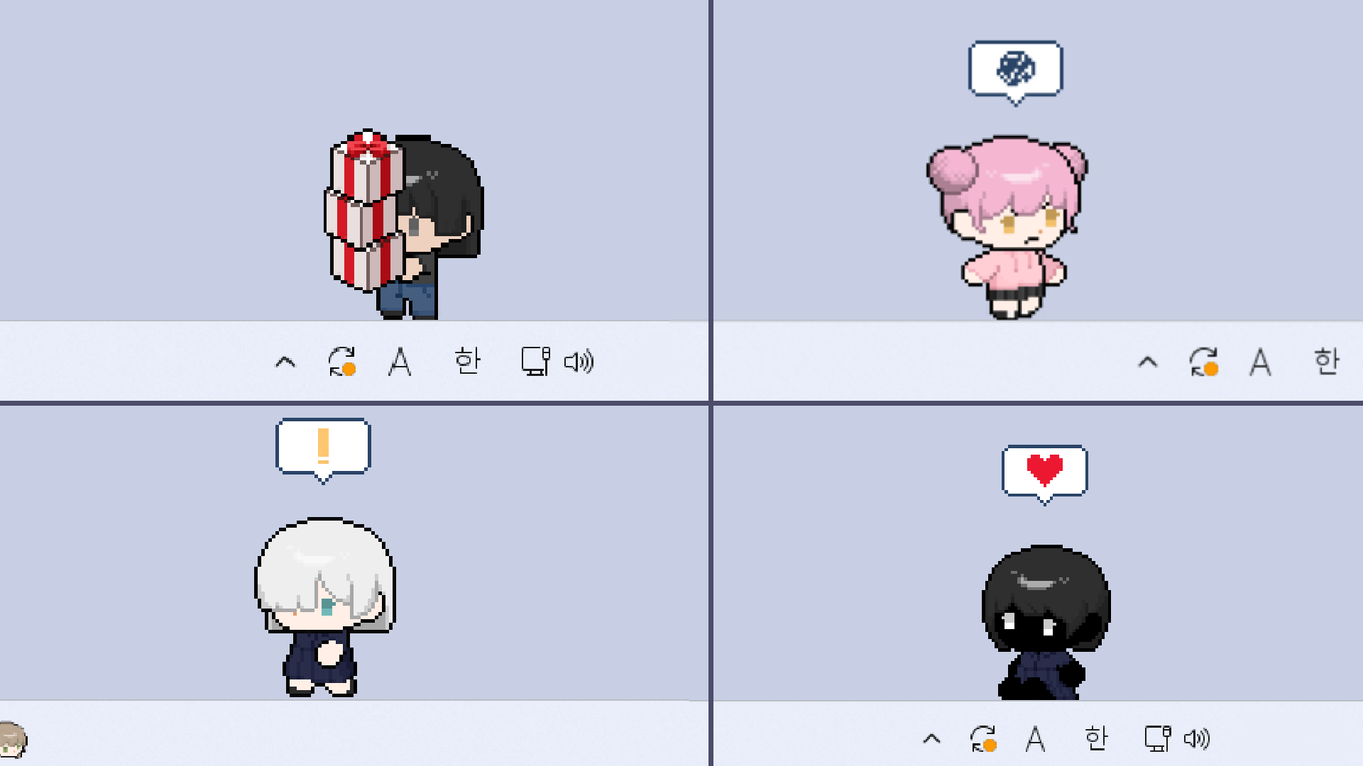 - Right-click character to open the menu (settings, customization, and more)